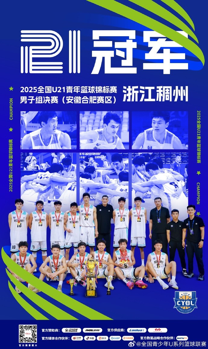 恭喜浙江稠州奪得2025年全國U21青年籃球錦標賽男子組冠軍,青春熱血,全隊齊心!