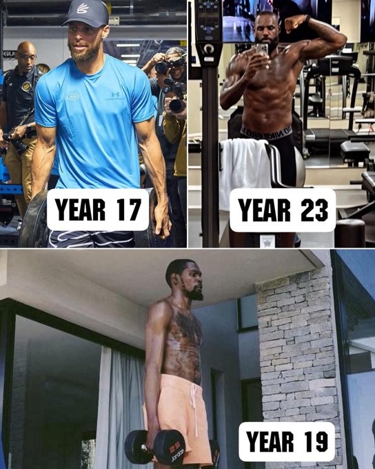 NBA Memes調(diào)侃寫道:“距離新賽季還有一個月,和老詹、庫里比起來,杜蘭特(的身材)仍像是一位新秀?!?/p>