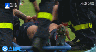 09月15日訊 法甲第4輪巴黎vs朗斯第66分鐘,貝拉爾多對抗下崴腳,被擔(dān)架太抬出場外,加上此前受傷的K77和李剛?cè)?,巴黎本場傷?人!