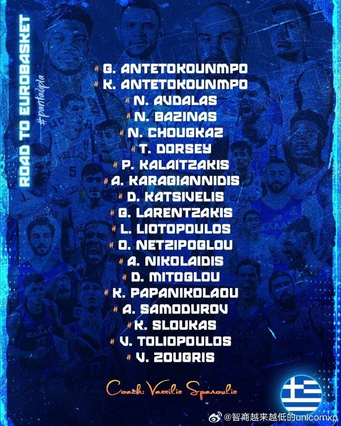 7月22日訊 希臘男籃公布?xì)W錦賽19人集訓(xùn)大名單,詳情如下: