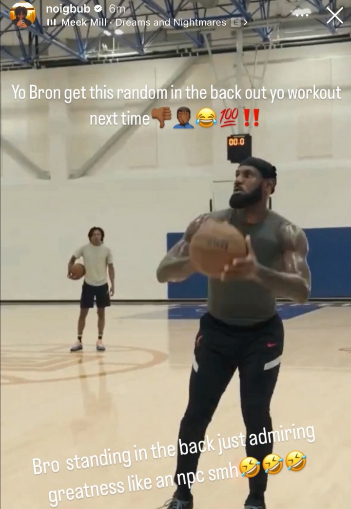 視頻的背景中,奇才后衛(wèi)卡爾頓-鮑勃-卡林頓站著認(rèn)真欣賞,他隨后在Instagram上調(diào)侃自己說:“Yo老詹!下次帶上背景里這人一起練唄?????♂?????!哥們兒站在那里像個NPC一樣哎喲我去??????”