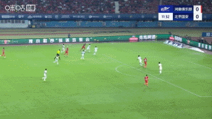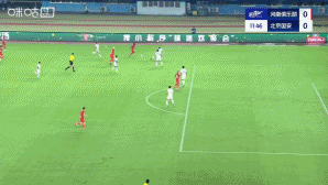 比賽第12分鐘,河南進(jìn)攻,阿奇姆彭左路傳中,侯森沒能碰到球,后點鐘義浩面對空門機(jī)會凌空打門,足球偏出遠(yuǎn)端立柱出界了。
