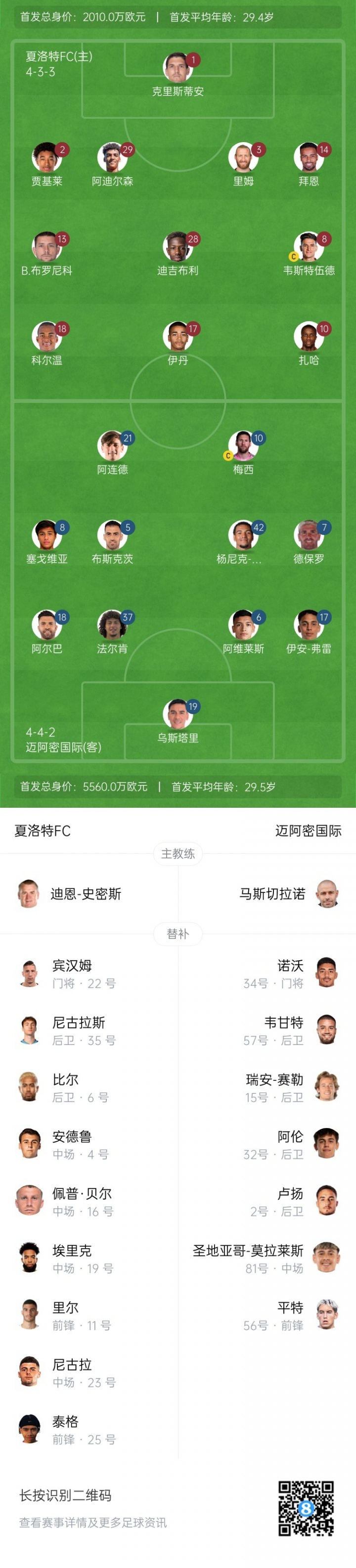 夏洛特FC替補:22-賓漢姆、35-尼古拉斯、6-比爾、4-安德魯、16-佩普·貝爾、19-埃里克、11-里爾、23-尼古拉、25-泰格