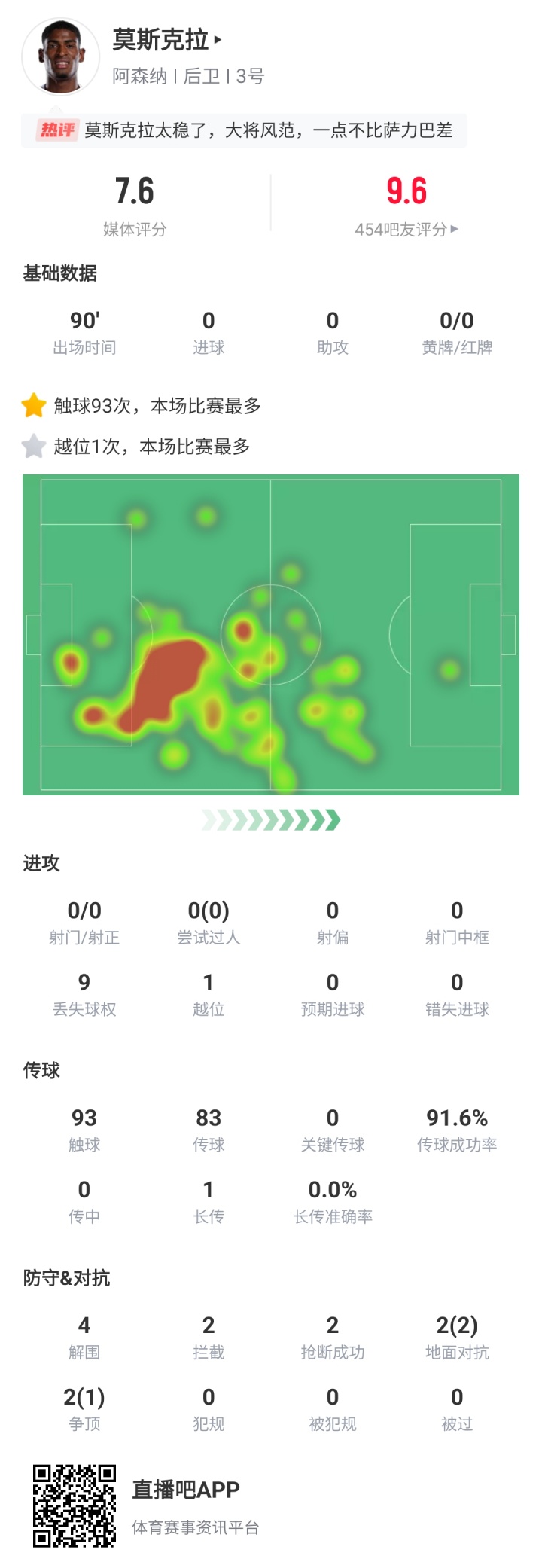 09月14日訊 英超第4輪,阿森納3-0擊敗諾丁漢森林,本場比賽頂替受傷的薩利巴先發(fā)的莫斯克拉發(fā)揮出色,受到球迷一致好評。