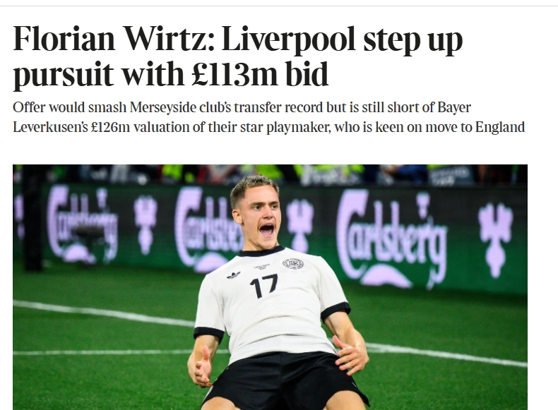 DO的報(bào)道與泰晤士報(bào)的數(shù)字一致,都是1.13億鎊(1.34億歐)的報(bào)價(jià),包括1億鎊(1.187億歐)的基礎(chǔ)付款,以及1300萬(wàn)鎊(1540萬(wàn)歐)的附加金額,可以預(yù)見(jiàn)絕大多數(shù)資金都是有保障的;利物浦無(wú)意為維爾茨出價(jià)1.264億鎊(1.5億歐)。