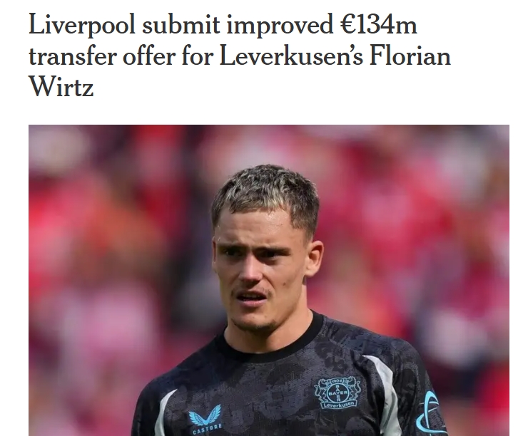 利物浦向勒沃庫(kù)森提交了修改后的1.13億鎊報(bào)價(jià),基礎(chǔ)轉(zhuǎn)會(huì)費(fèi)1億鎊,浮動(dòng)1300萬(wàn)鎊,低于勒沃庫(kù)森索要的1.26億鎊(1.5億歐)要求。