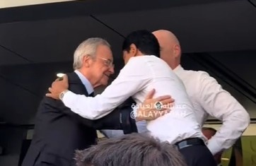 賽后,巴黎主席納賽爾和皇馬主席弗洛倫蒂諾、國際足聯(lián)主席因凡蒂諾擁抱致意。