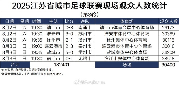 2025江蘇省城市足球聯(lián)賽現(xiàn)場觀眾人數(shù)統(tǒng)計(第8輪) ???