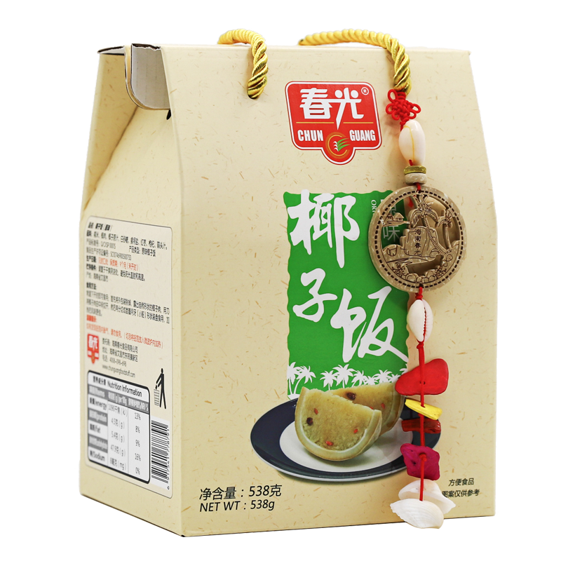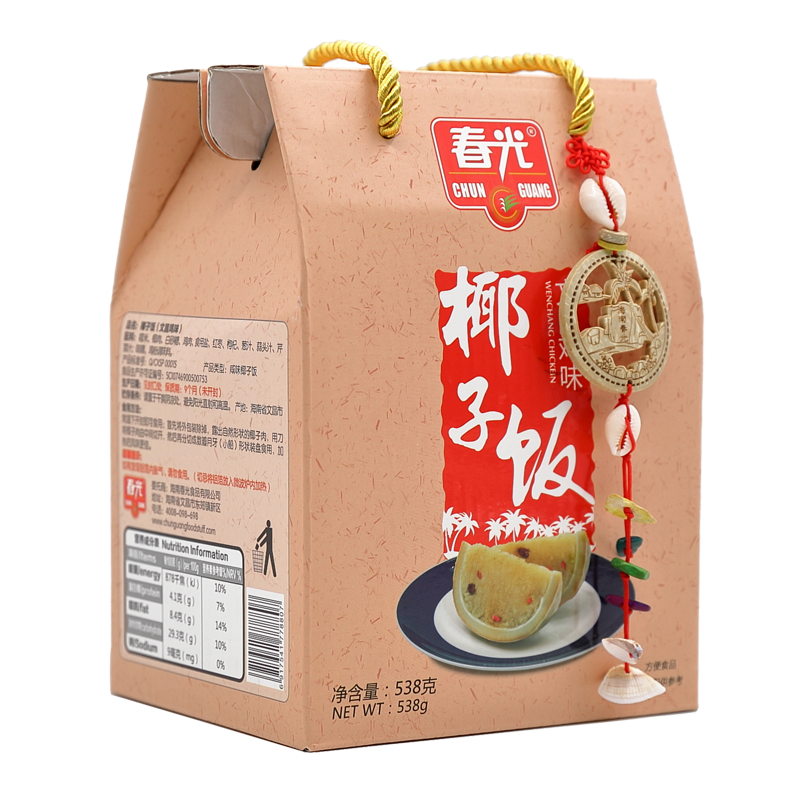 糯米、椰肉、白砂糖、雞肉、食用鹽、紅棗、枸杞、蔥汁、蒜頭汁、芹菜汁、味精、雞粉調(diào)味料。
