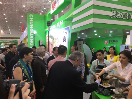 12月12日上午,2015年中國(海南)國際熱帶農(nóng)產(chǎn)品冬季交易會(huì)(下稱:“冬交會(huì)”)在海南國際會(huì)展中心隆重開幕,有近1700家企業(yè)參展,現(xiàn)場人潮涌動(dòng)。記者在本省大型龍頭企業(yè)品牌特裝館中發(fā)現(xiàn),海南春光食品展位格外搶眼。凸顯“生機(jī)勃勃、綠色健康”的雙層獨(dú)特展臺、創(chuàng)新的推介形式,以及瓊臺兩島知名主持人現(xiàn)場互動(dòng)傳遞“兩岸一家親”的情懷,吸引諸多市民游客及國際友人駐足參觀品嘗,交口稱贊。據(jù)悉,由省臺辦帶領(lǐng)的臺商、臺胞等一行10多人到場參觀交流。