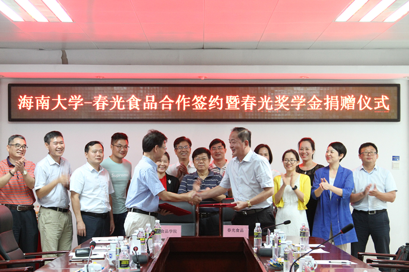 2018年11月1日,海南春光食品集團(tuán)與海南大學(xué)合作簽約暨春光獎(jiǎng)學(xué)金捐贈(zèng)儀式在海南大學(xué)舉行。雙方合作旨在深挖農(nóng)產(chǎn)品加工技術(shù),加強(qiáng)校企合作,為海南自由貿(mào)易區(qū)貿(mào)易港建設(shè)培養(yǎng)更多實(shí)用型人才。
