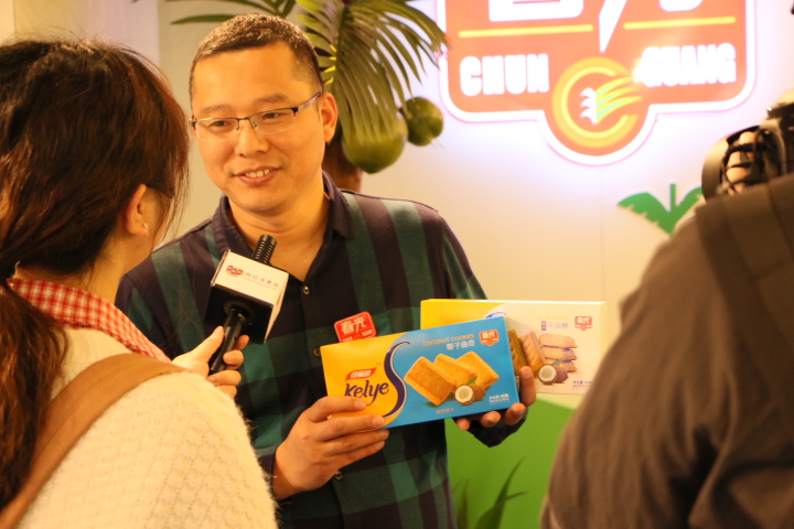 在本次糖酒會上,春光食品攜旗下新品可麗思系列餅干-椰子千層酥、椰子蝴蝶酥、椰子曲奇、椰子巧克力曲奇、椰子巴旦木曲奇以及榴蓮酥卷、菠蘿蜜果干、菠蘿蜜初果干、香蕉干、原味椰子脆片、芒果味椰子脆片、椰子味爆漿果心球、芒果味爆漿果心球等具有海南特色風味的休閑食品參展,陣容強大,產(chǎn)品眾多,展示出春光食品強大的產(chǎn)品創(chuàng)新研發(fā)能力和市場競爭優(yōu)勢。