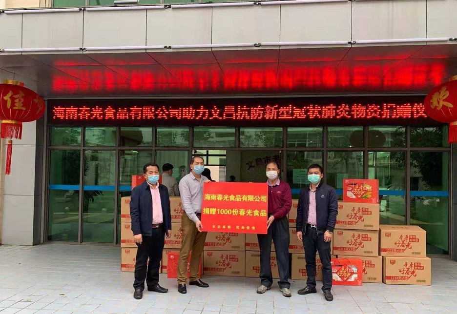 2月5日,海南春光食品向文昌市一線防疫醫(yī)務(wù)人員和集中醫(yī)學(xué)觀察點(diǎn)共捐贈(zèng)了1000份食品,助力文昌市疫情防控工作。