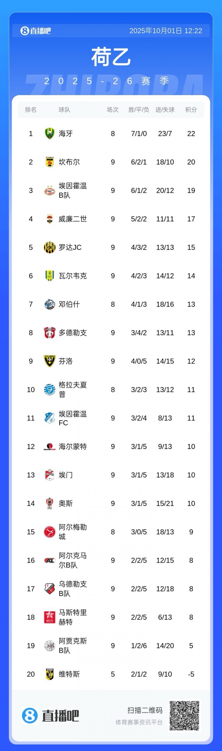 艱難拿分!荷乙維特斯本賽季-12分開局,5輪過后積分為-5分