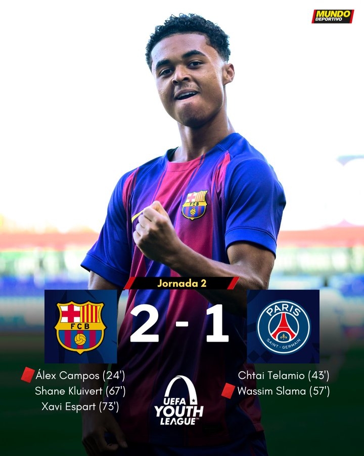 青年歐冠巴薩2-1逆轉(zhuǎn)巴黎,克魯伊維特小兒子兜射死角破門