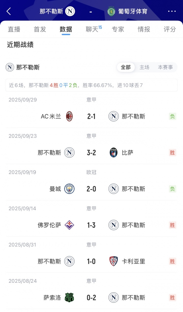 那不勒斯上一輪歐冠,0-2不敵曼城;葡萄牙體育上一輪歐冠,4-1戰(zhàn)勝阿拉木圖凱拉特!